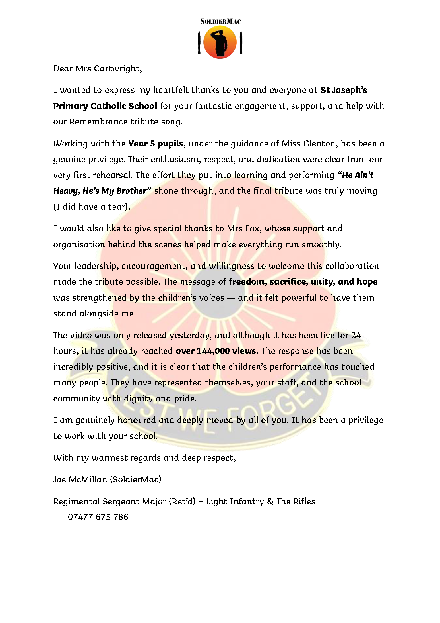 Remembrance Tribute Thank you